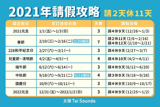 上班族2021請假攻略 8個連假 春節請2天爽放11天 Cheers快樂工作人