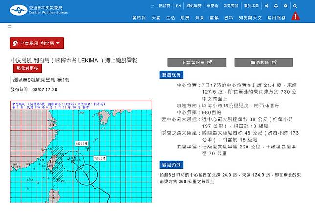 新頭殼newtalk 中颱烟花持續接近台灣且不斷增強中中央氣象局表示由於海上無明顯導引氣流目前烟花颱風移動緩慢預估今22日發布陸上.